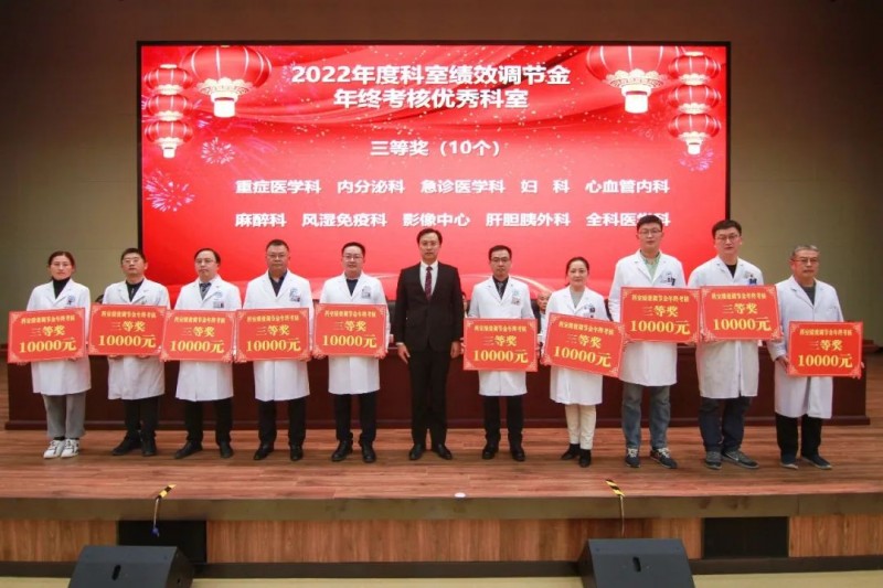 李甦雁宣读了《市一院关于表彰2022年度科室绩效调节金年终考核优秀科室的决定》。