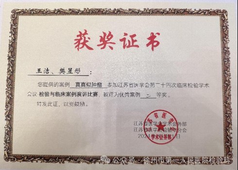 在王丽教授的的指导下,徐州一院医学检验科樊昱彤、王洁组合作为徐州代表队参与了比赛并获得二等奖佳绩。