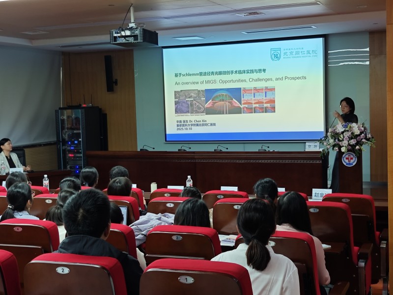 学术交流环节,青光眼科副主任苗培建,副主任医师丁文君,医师卢亚楠、褚燕子、洪雪晴等青光眼领域专家学者,分别就《激光治疗青光眼》《2025年中国抗青光眼药物固定复方制剂使用专家共识》《超声睫状体成形术简介及病历分享》《房角镜的检查》《新版AGV植入术专家共识解读》等主题进行了精彩授课,拓展了学员们的临床视野,为现阶段的学习和日后的创新奠定基础。