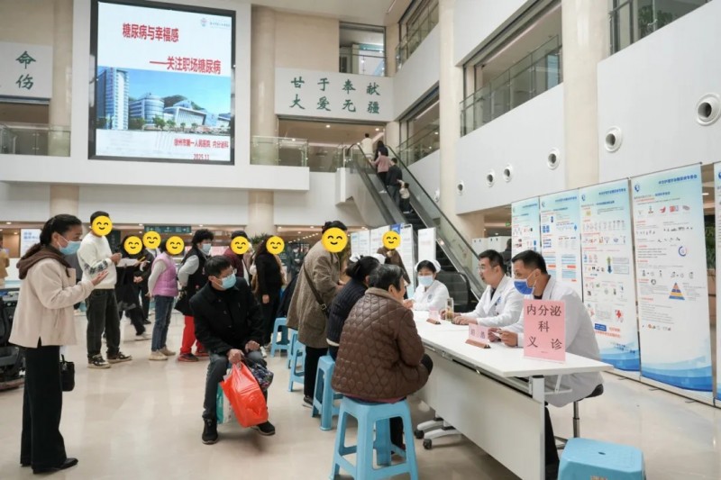 糖尿病是威胁我国居民健康的主要慢性病之一,预防和控制糖尿病是促进基本公共卫生服务均等化的重要内容。2025年11月14日是第19个“联合国糖尿病日”。当天,徐州市第一人民医院内分泌科在门诊大厅举行了“糖尿病与幸福感--关注职场糖尿病”主题义诊活动,旨在增强公众对糖尿病的认知水平、防治意识和糖尿病早期检出率,降低糖尿病发生风险,提高患者的自我管理知识和技能,减少和延缓并发症的发生。