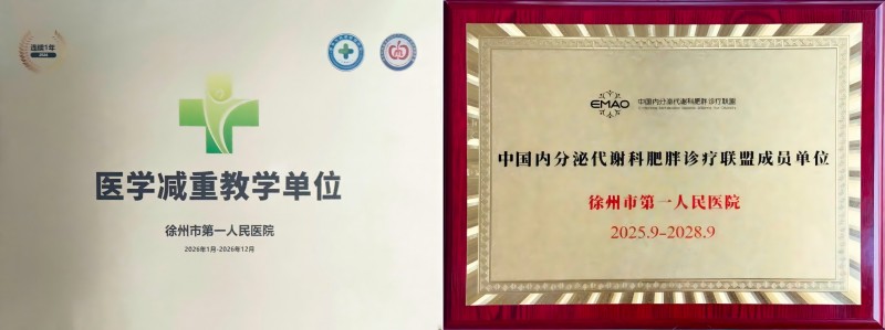 近日,徐州市第一人民医院内分泌科迎来“双喜临门”:获评中国医疗保健国际交流促进会2026年度“医学减重教学单位”,成为“中国内分泌代谢科肥胖诊疗联盟”成员单位。这两项荣誉,标志着科室在肥胖与体重管理领域的规范化诊疗、教学培训和学科建设方面迈上了新台阶,为更好地服务肥胖及相关代谢疾病患者提供了有力保障。