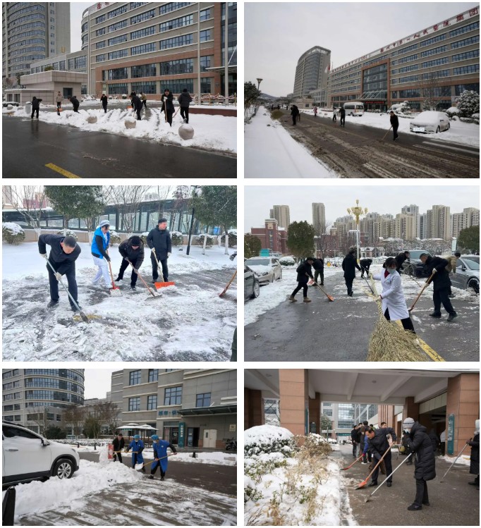 为应对持续雨雪低温天气带来的路面结冰、通行受阻等风险,徐州一院第一时间启动应急响应,总务处联动各物业公司工作人员以“雪情就是命令,安全就是责任”为准则,全员上阵、多点发力,用最快速度、最实举措筑牢冬季安全通行防线。各职能部门分片包干,协助开展院区扫雪工作,确保责任区域内积雪清扫到位。