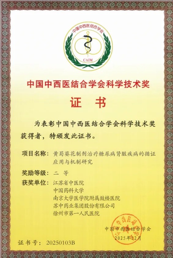 近日,中国中西医结合学会获悉,徐州市第一人民医院肾脏内科主任、二级主任医师王玲团队参与研究的《黄蜀葵花制剂治疗糖尿病肾脏疾病的循证应用与机制研究 》,荣获中国中西医结合学会科技进步二等奖。该奖项的获得,标志着徐州一院肾脏内科在中西医结合治疗肾脏疾病领域迈出了重要一步。