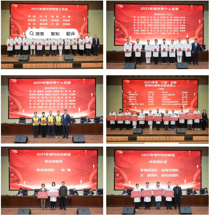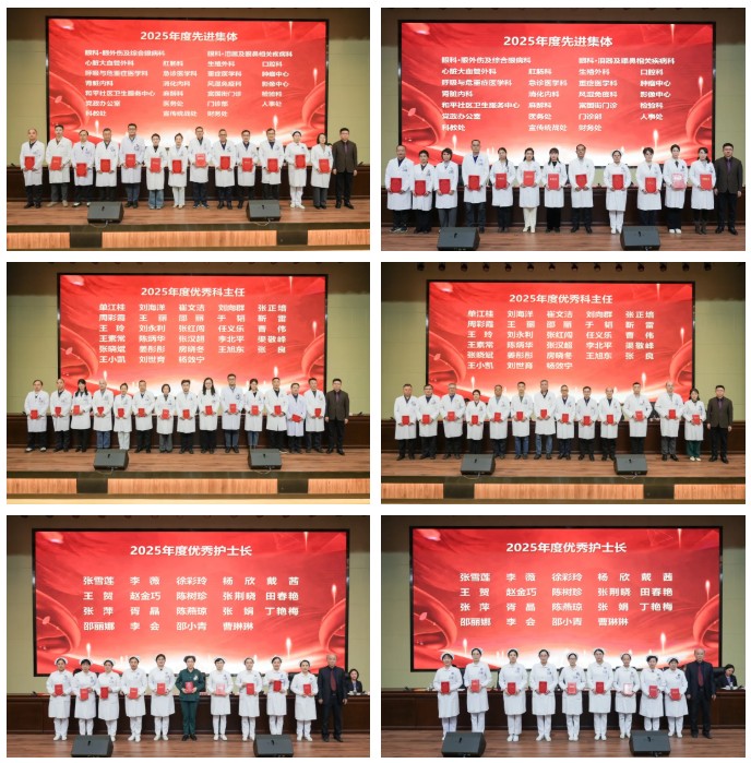 领导班子分别为2025年度在医疗服务、科室管理、“三新”业务、病历书写、行风建设、“四强四提升”、科技创新等工作中表现突出的集体和个人进行颁奖,激励他们为医疗集团高质量发展作出更大贡献。