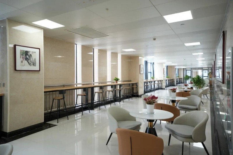 经过精心筹备,这个占地200余平方米的空间被划分为多个功能区:舒适的休息区配备按摩椅和可充电边几;静谧的阅读区摆放了医学期刊和书籍;温馨的交流区设有饮水机和咖啡机。绿植点缀其间,营造出宁静舒适的氛围。