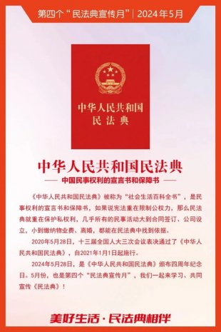 2024年5月是第四个“民法典宣传月”,下面让我们通过系列海报,一起走进《中华人民共和国民法典》吧!...