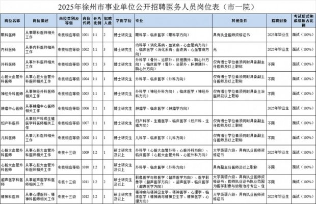 2025年徐州市第一人民医院公开招聘在编医务人员公告