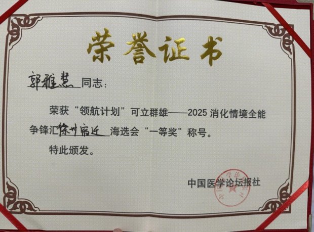 医院荣誉丨喜报!徐州一院消化内科青年医师郭雅慧再获冠军!