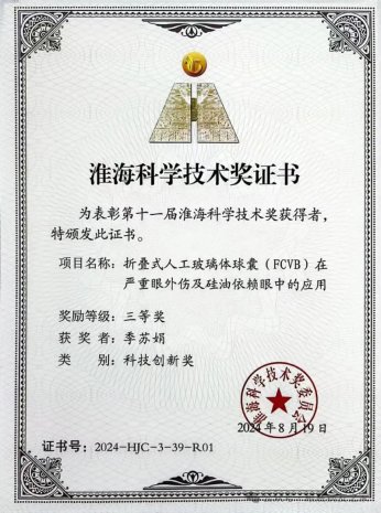 淮海科学技术奖是经国家科技部、国家科学技术奖励工作办公室批准设立的全国性社会力量科学技术奖,是国家科学技术奖励体系的重要组成部分。 徐州一院眼外伤及综合眼病科主任季...