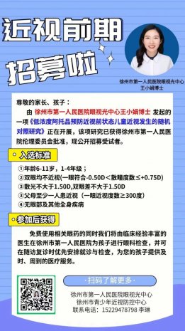 低浓度阿托品近视前期招募开始了!担心孩子近视的家长们看过来~~~