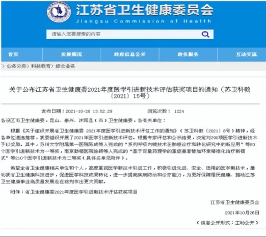 根据江苏省卫健委和徐州市卫健委相关文件(苏卫科教【2021】15号、徐卫科教【2021】9号)通知,市一院获得12项2021年度省、市医学新技术引进奖。 其中,江苏省医学新技术引进奖2项,徐...