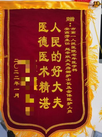 市一院老年医学科 多学科诊疗共筑生命桥梁 感谢医护人员精湛的技术与精心护理,把老父亲从鬼门关拉回来出院当天,百岁患者吴大爷的家属把锦旗送至市一院老年医学科安燕芳医护...