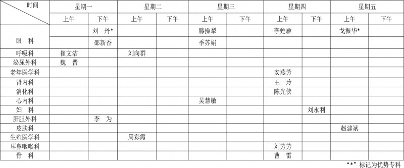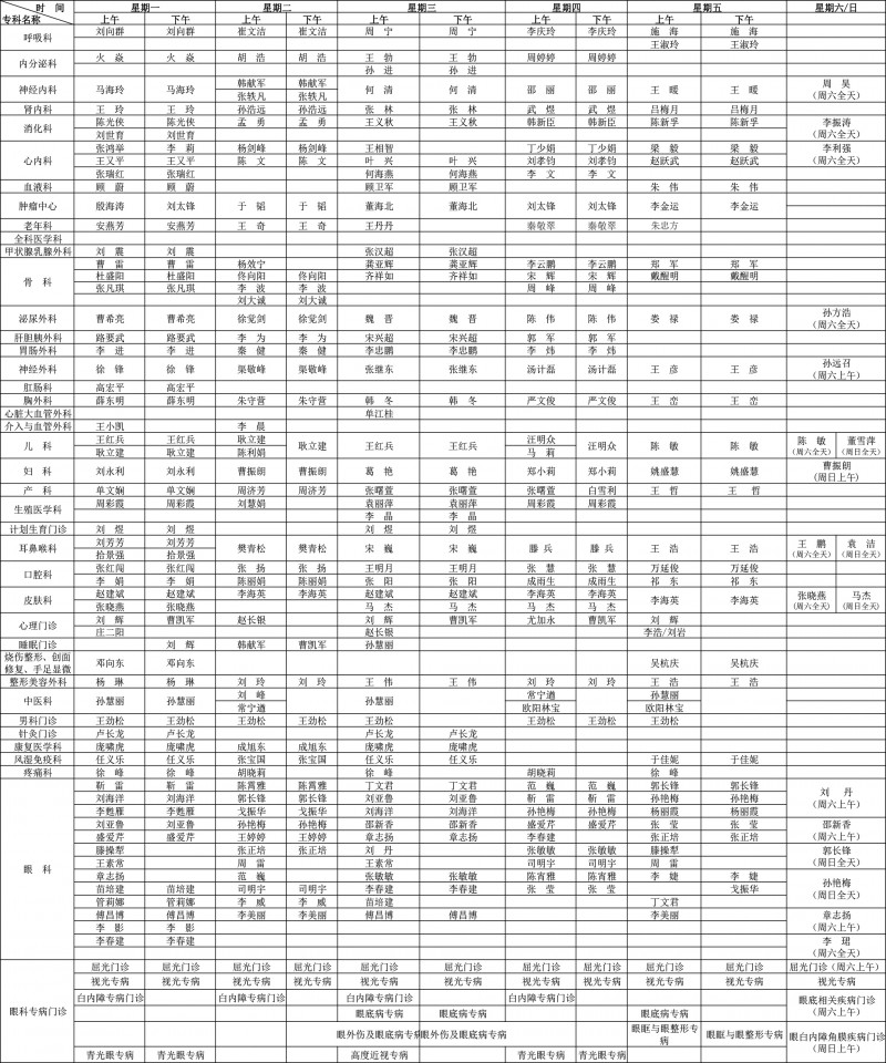 高级专家及优势专科专家排班表