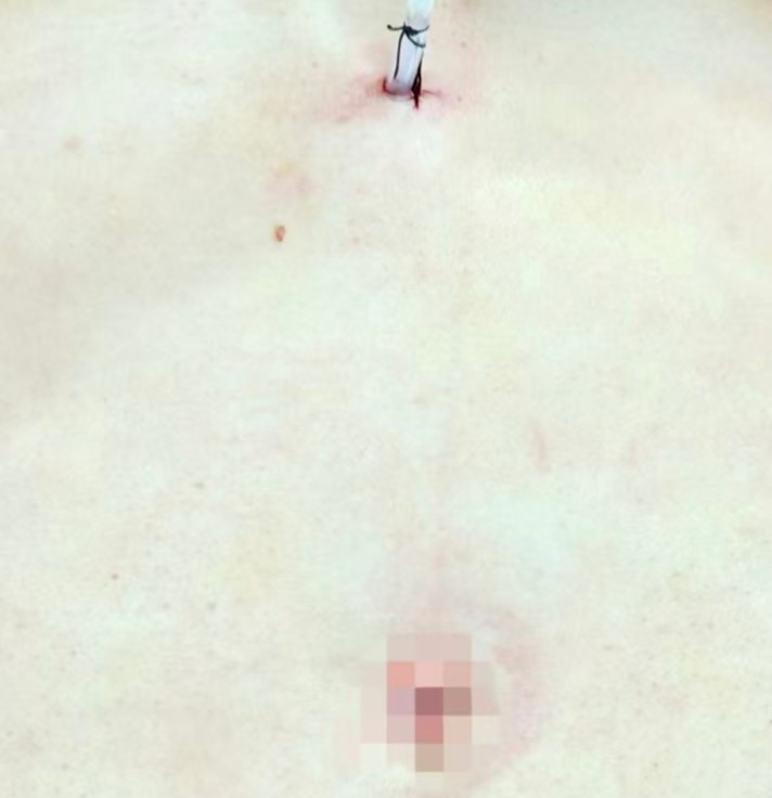 了解患者诉求后,普外·肝胆胰外科主任宋兴超教授带领团队评估病情后,立即决定采用更先进的两孔法腹腔镜胆总管探查取石术。该技术仅需在患者脐部建立1.0cm、剑突下建立0.5cm的两个微小切口,通过荧光腹腔镜的精准引导,借助特殊微创器械完成结石探查、抓取、冲洗等操作,术后仅留置一根腹腔引流管,并未放置T管,避免患者长期留置管道的痛苦。