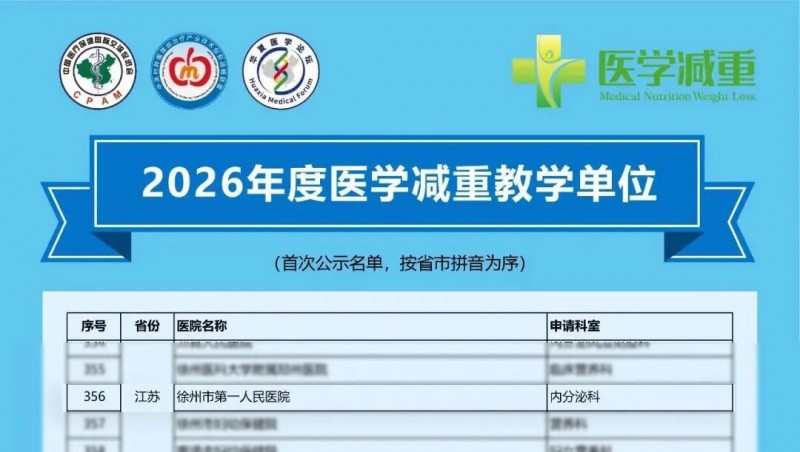 近日,徐州市第一人民医院内分泌科迎来“双喜临门”:获评中国医疗保健国际交流促进会2026年度“医学减重教学单位”,成为“中国内分泌代谢科肥胖诊疗联盟”成员单位。这两项荣誉,标志着科室在肥胖与体重管理领域的规范化诊疗、教学培训和学科建设方面迈上了新台阶,为更好地服务肥胖及相关代谢疾病患者提供了有力保障。