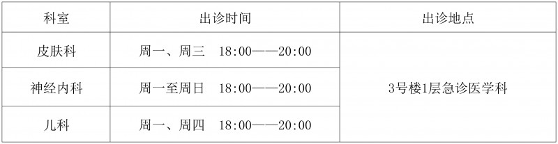 夜间门诊一览表