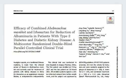此次获奖项目聚焦糖尿病肾脏疾病(DKD)所致的蛋白尿与肾功能减退是临床诊疗难题这一临床痛点,创新性提出“湿热”论治DKD蛋白尿的新观点,首次将黄蜀葵花制剂应用于DKD治疗。项目明确了中西医结合治疗DKD的核心思路:DKD病程中湿热内生,耗伤肾阴,导致蛋白尿迁延不愈,黄蜀葵花制剂可清热利湿、解毒消肿,针对性改善湿热证型,保护肾功能。该项目由江苏省中医院牵头开展中法国际合作,联合多家医疗机构实施多中心随机对照双盲(RCT)研究,以高级别循证证据确证了黄葵胶囊的临床疗效,研究成果获得国际肾病领域权威认可。同时依托单细胞测序等前沿技术,率先揭示了黄蜀葵花制剂多靶点、多维度治疗DKD的分子机制,为中医药的科学内涵提供了有力佐证。该项目入选中华中医药学会“2022年度中医药十大学术进展”,产生了良好的社会效益,有力推动了中西医结合治疗DKD的进步与发展。