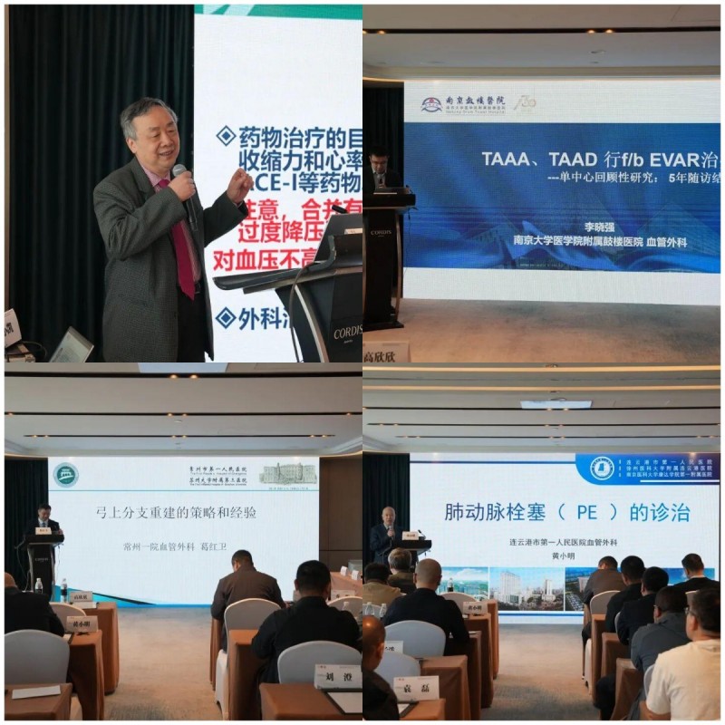 会上,华中科技大学同济医学院附属协和医院血管外科金毕教授,联勤保障部队920医院血管外科郭曙光教授,安徽医科大学第一附属医院血管外科张志功教授,江苏省医学会血管外科候任主委、江苏省血管外科医师分会副会长、苏州大学附属第四医院血管外科张喜成教授,江苏省医师协会血管外科医师分会候任会长、南京鼓楼医院血管外科乔彤教授等省内外知名专家作精彩报告。专家们就主动脉疾病腔内治疗的最新进展、腹主动脉瘤开放手术的注意事项、肺栓塞的诊治、下肢动脉硬化闭塞症腔内治疗策略等热点难点问题进行了深入浅出的讲解。
