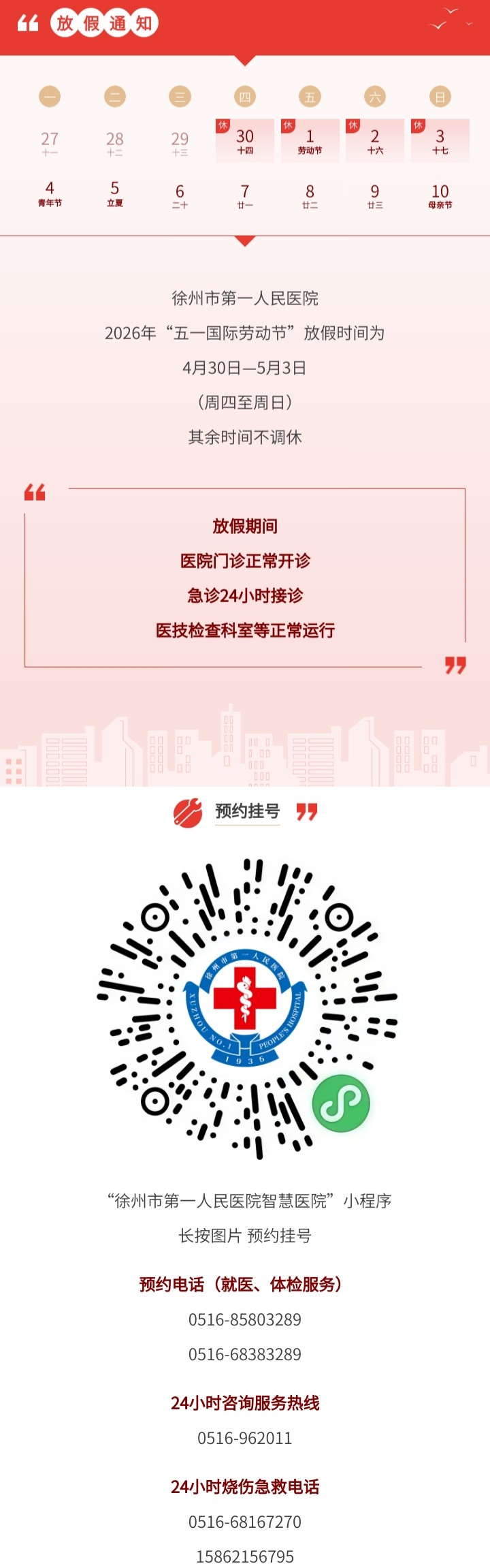 正常开诊 | 徐州市第一人民医院2026年“五一”假期工作安排