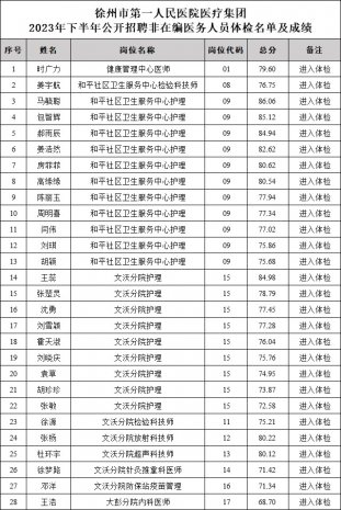 徐州市第一人民医院医疗集团2023年下半年公开招聘非在编医务人员体检名单及成绩