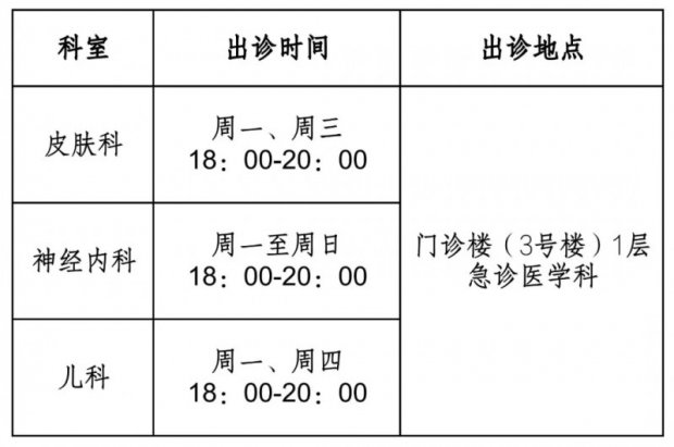 为进一步满足广大人民群众的医疗需求,徐州一院在门诊楼(3号楼)1层急诊医学科区域开设了皮肤科、神经内科、儿科夜间门诊,方便群众就医。 按照徐州市卫健委《关于优化医疗机构...