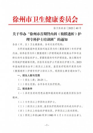 关于举办徐州市首期肾内科(腹膜透析)护理专科护士培训班、徐州市第二期眼科护理专科护士培训班、徐州市消化内科护理专科护士培训班的通知如下: 友情提示: (一)学员培训、住宿...